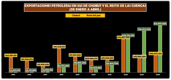 Es la primera vez en la historia productiva del país que Chubut enfrenta tamaña diferencia en la exportación de hidrocarburos, siendo triplicada por Neuquén y el crudo no convencional de Vaca Muerta.