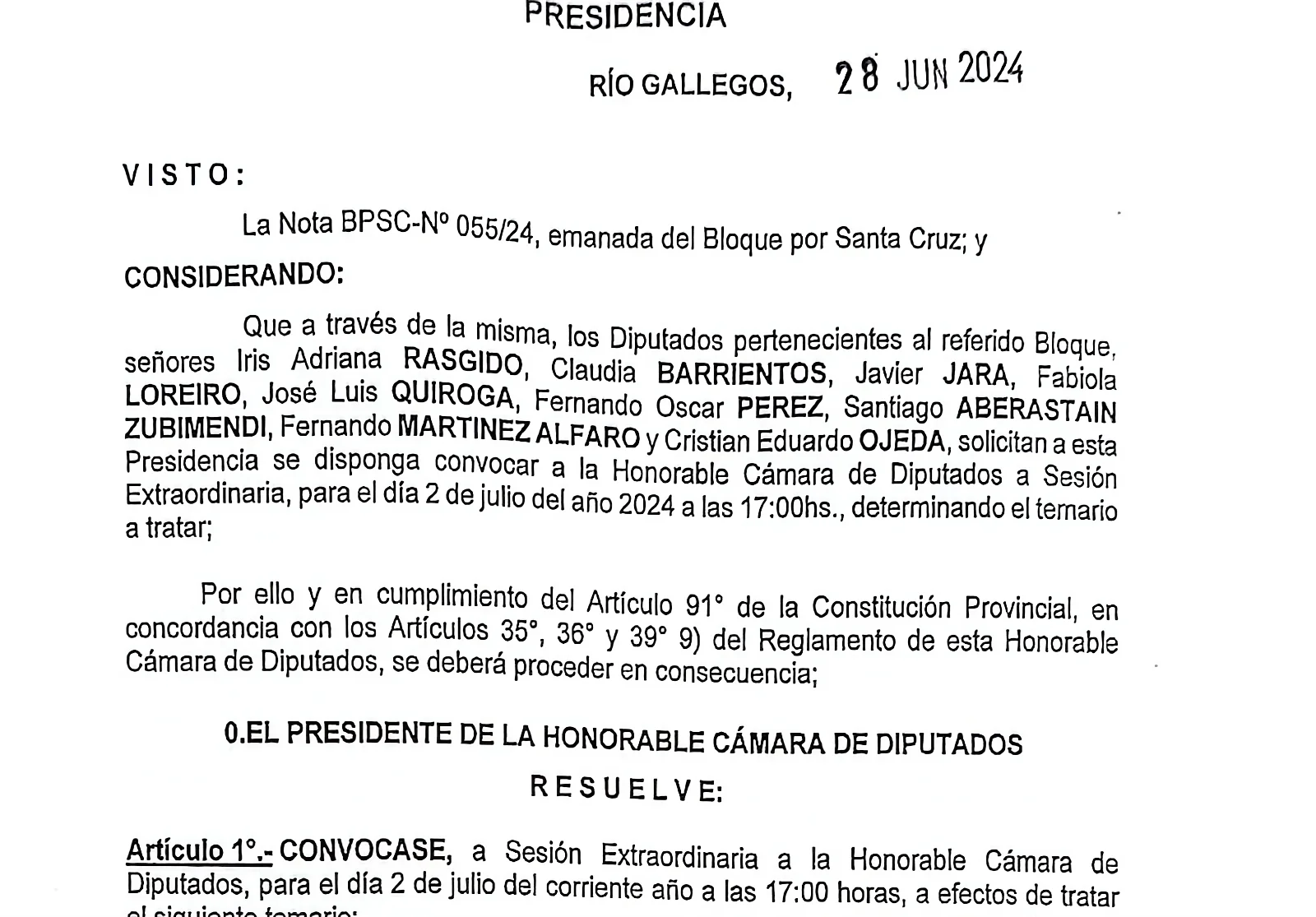 Recordemos que en la última sesión, se dieron irregularidades que generaron discusiones acaloradas y debates alrededor de la forma en que el oficialismo la planteó, dado que fue presidida por Fabián Leguizamón que en ausencia de Claudio Vidal estaba a cargo del Ejecutivo y por lo tanto debería haber presidido la legislatura el vicepresidente 1º y la participación de Iris Rasguido, quien ya había renunciado de hecho para asumir en el Consejo Provincial de Educación e igualmente estuvo ocupando su banca en lugar de la persona que la secunda en la lista.