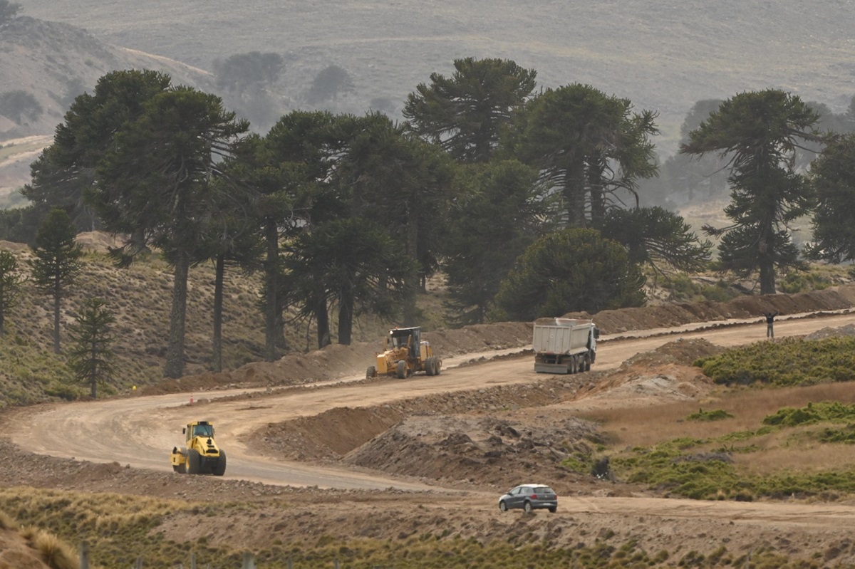 Las máquinas trabajan en la obra, a pocos kilómetros de Villa Pehuenia. Foto: Alejandro Carnevale.