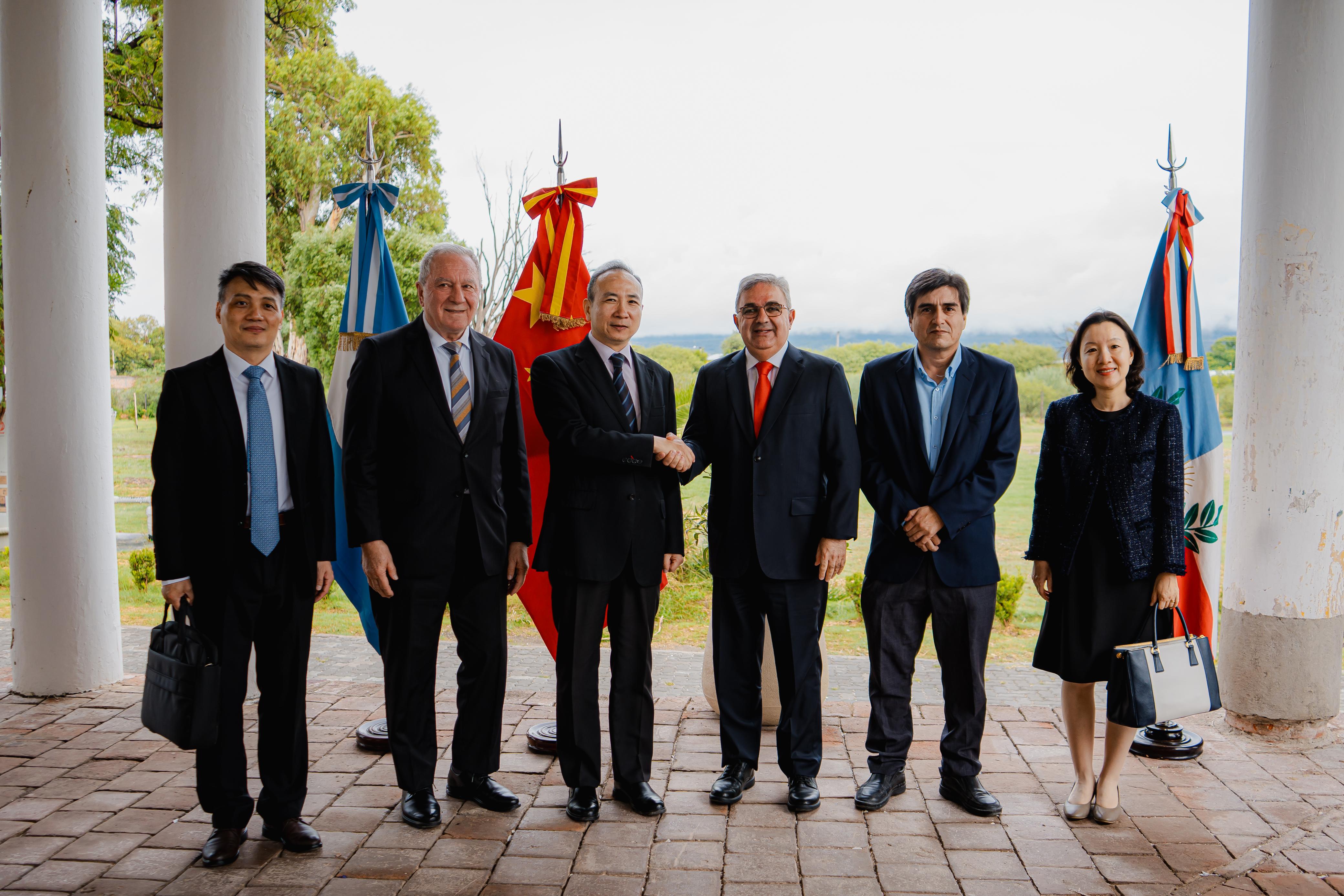El mandatario provincial estuvo acompañado por el vicegobernador Rubén Dusso y el ministro de Minería, Marcelo Murua. Por parte de la comitiva china participaron Xue Dongxiao; el consejero económico y comercial, An Guanghui; el secretario del embajador, Xie Zhicheng; la secretaria del consejero, Mei Yuzhe; y la funcionaria Lou Anran