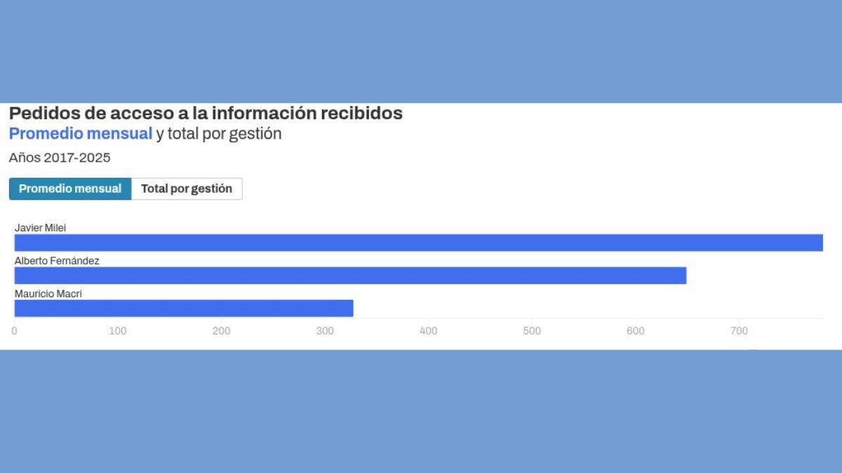 Desde que Javier Milei asumió el 10 de diciembre de 2023 y hasta abril de 2025, se realizaron 12.508 pedidos de acceso: 781 por mes, el promedio más alto desde que se implementó la norma.
