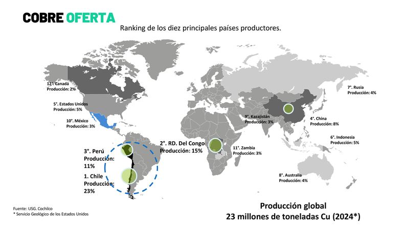 El epicentro de esta demanda se encuentra en Asia, con China como actor dominante. El gigante asiático multiplicó casi por cinco su participación en el consumo mundial desde el año 2000 y hoy concentra el 60% del total. Este cambio estructural ha modificado las prioridades de las grandes mineras y los flujos de capital, que buscan proyectos capaces de abastecer un mercado en expansión.