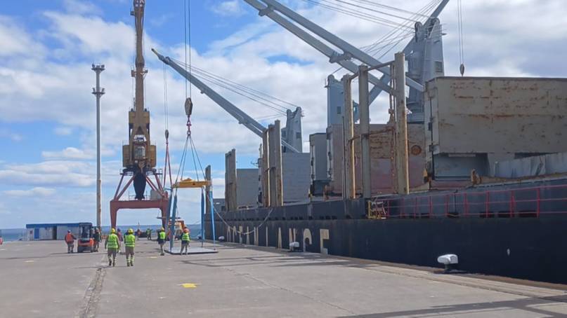 La logística interna incluye la descarga en el muelle, el acopio provisorio en playa y el posterior traslado terrestre hacia Punta Colorada. Cada camión transportará piezas de gran porte, algunas de dimensiones fuera de estándar, lo que requerirá escolta y coordinación con las autoridades viales para garantizar la seguridad del convoy.