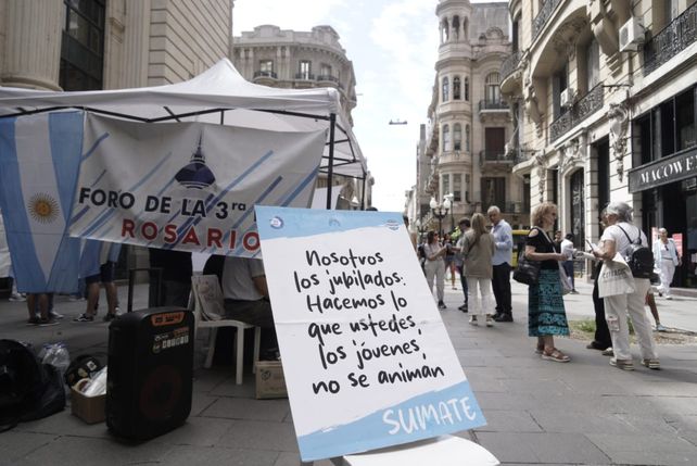 “Nosotros, los jubilados, hacemos lo que ustedes, los jóvenes, no se animan”, reza un cartel colgado en uno de los faroles de la peatonal Córdoba, casi llegando a la esquina de Corrientes. Sin importar el calor de febrero ni el sol inclemente, todos los viernes a la mañana, la Federación Regional de Asociaciones de Personas Adultas Mayores (Fapram) y el Foro de la Tercera Edad desplieguan su carpa sobre la peatonal, reparten volantes y juntan firmas para que la Defensoría de las Personas Mayores adquiera rango institucional dentro de la nueva Carta Orgánica de Rosario. “La militancia nunca se jubila”, afirma Santiago Arrieta, jubilado de 74 años y presidente del Foro de la Tercera Edad, en conversación con La Capital.